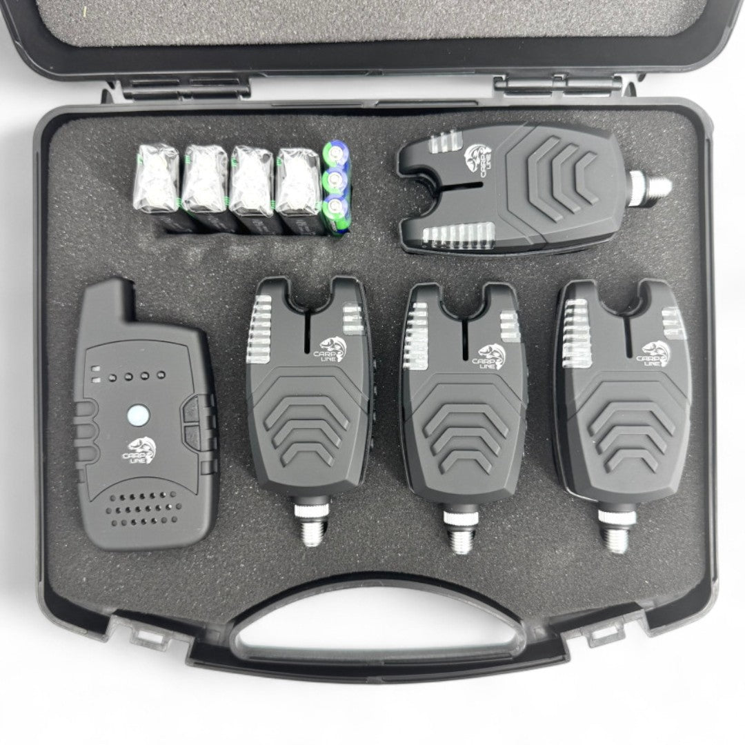 Carp Line TLI-32 — це набір із 4 бездротових сигналізаторів і пейджера в жорсткому кейсі. Ідеальний вибір для нічної ловлі, трофейних сесій та тих, хто цінує комфорт і надійність.
