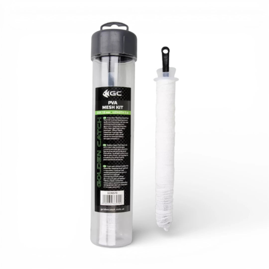 GC PVA Mesh Kit — це ПВА-рукав (сітка) в комплекті з тубусом і поршнем, який дозволяє швидко робити акуратні PVA-стіки для точної подачі корму прямо біля гачка.