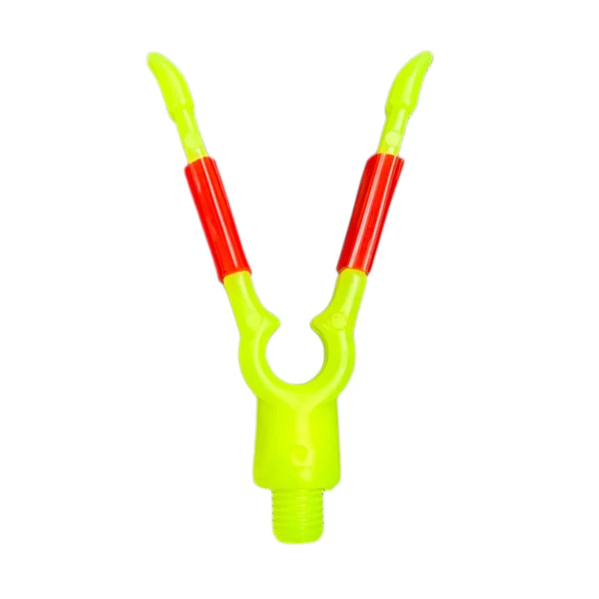Цей зелений пластиковий рогач зі світлонакопичувачем — простий, але дуже практичний аксесуар для підставок, стійок і буз-барів. М’яка/пружна форма вилки підтримує вудилище в правильному положенні, а світлонакопичувальні елементи допомагають швидко знайти снасть у темряві.
