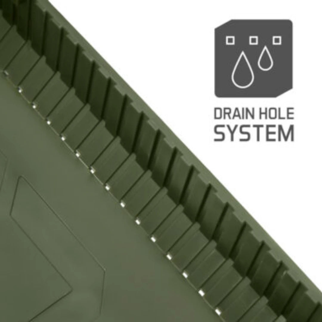 Підняті бортики допомагають утримувати речі на місці, а перфороване дно відводить воду під час дощу.